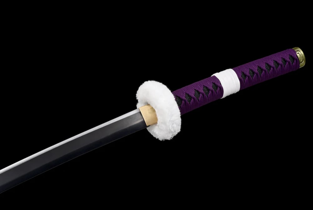 This Japanese katana with its black and purple handle will make it easy to picture yourself as the king of the pirates. Purple is one of the most commonly used colours in anime — its visual impact is undeniable, symbolising royalty, wealth, spirituality, and nobility. Everything a pirate king represents.
