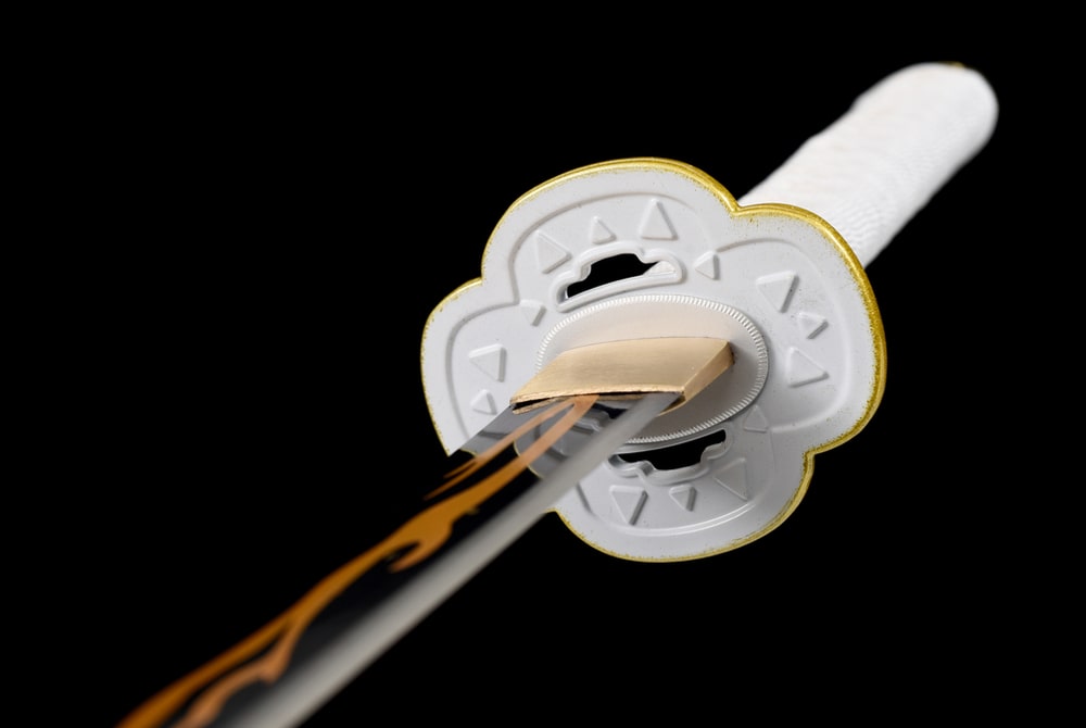 Immerse yourself in the captivating world of Demon Slayer with this exceptional replica that pays tribute to the beloved character Zenitsu. Crafted with artisanal precision, this katana embodies the perfection of Japanese swordsmithing and is infused with the adventurous spirit of Demon Slayer. A yellow lightning pattern decorates the blade of this Japanese sword, which is made from high carbon steel. This high carbon content gives it unmatched durability. The scabbard is made from leather with a wooden core, the handle is solid wood, and the tsuba is crafted from a copper alloy.