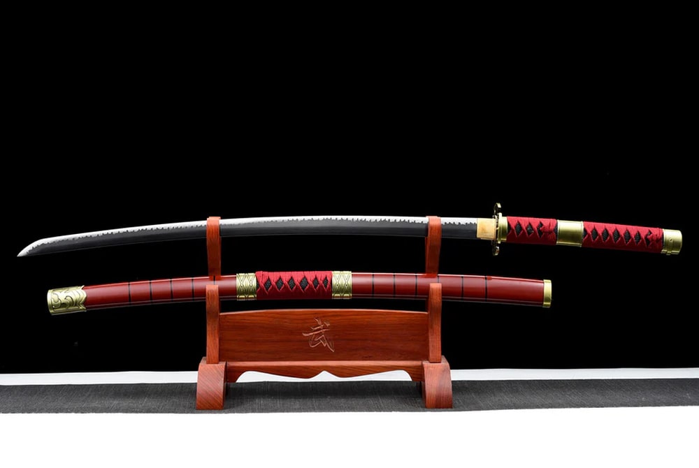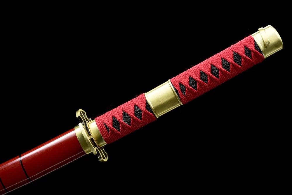 Immerse yourself in the world of One Piece with the Sandai Kitetsu Zoro Katana, a hand-forged masterpiece that embodies the legendary determination of Roronoa Zoro. Every line of the blade, every distinctive hamon pattern, tells the story of an artisan who devoted their craft to creating a masterpiece worthy of the greatest pirate. Each detail of this sword reflects Japanese tradition and showcases the finesse of true craftsmanship. Its carefully designed guard and pommel offer a unique aesthetic, while the red scabbard adds a touch of mystery and elegance.